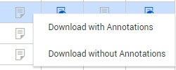 Click the Download icon of the PDF you want to download. A menu shows with options to download with annotations or without annotations.