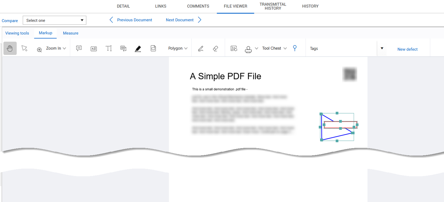 In the viewer, use the markup and formatting tools to add a markup with multiple properties, such as shape, colors, and border thickness.