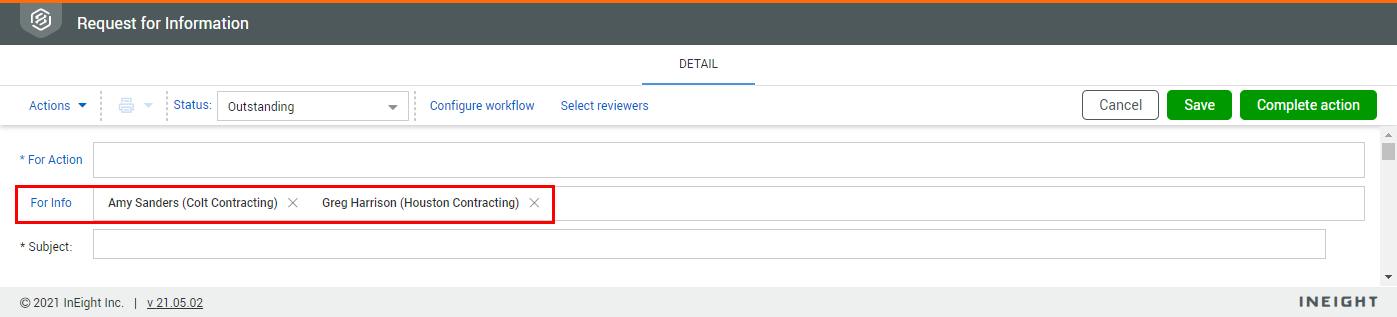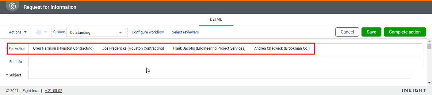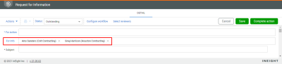For Action Participants: Participants listed in the For Action field are required to update one or more sections of the form (other than the initiator section). The initiator can also be added as a For Action recipient.