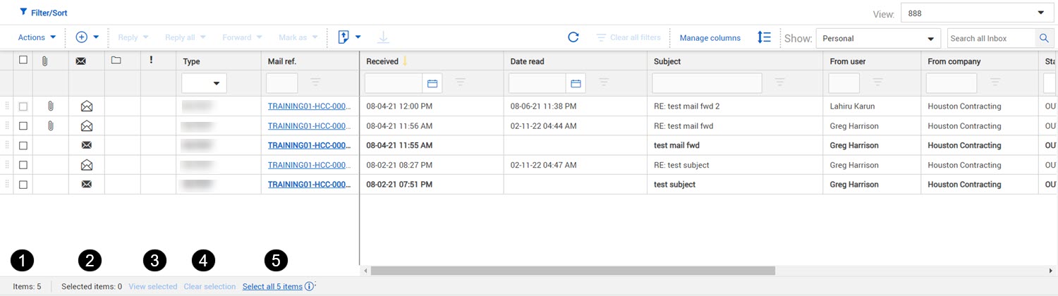 | 5 | Lets you select all items in the register. This option is shown only when there are fewer than 1000 items in the register. It is not shown when there are 1000 or more items. |