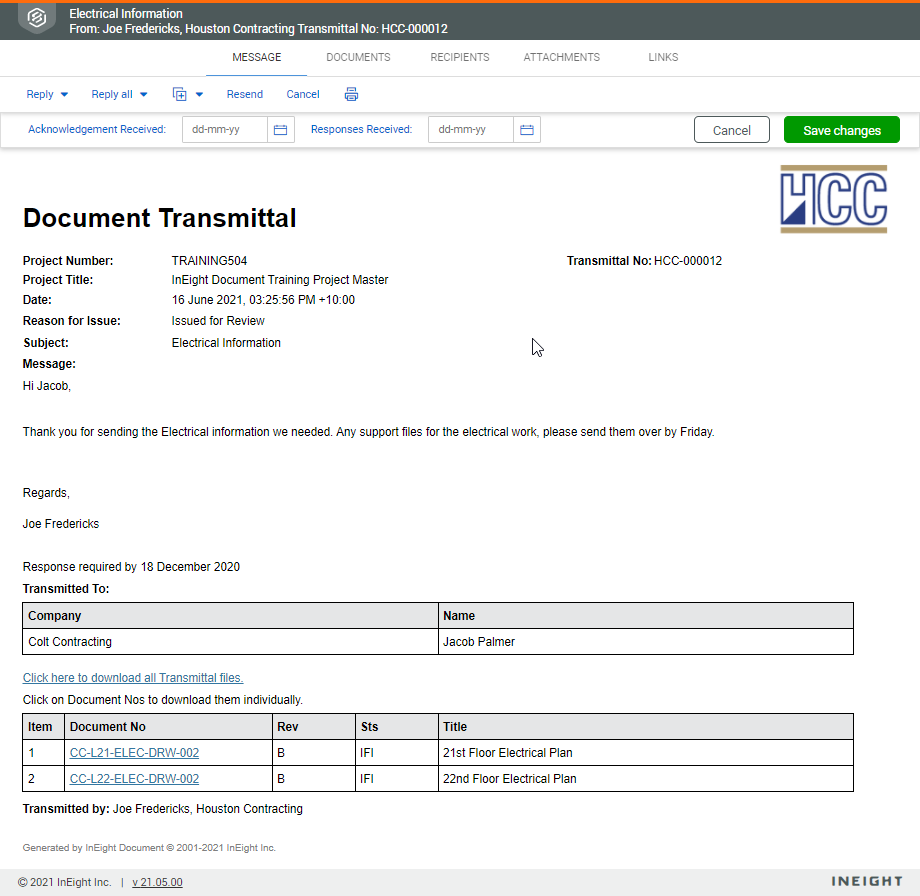 Recipients receive transmittals via their nominated email account. Documents can be downloaded individually from the links on the transmittal. Recipients can also choose to download the documents in bulk.