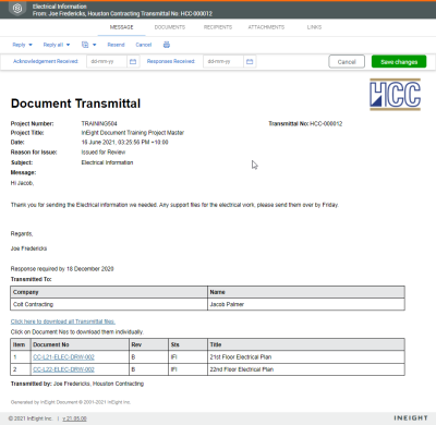 There are multiple ways to generate transmittals using InEight Document, depending on your requirements.