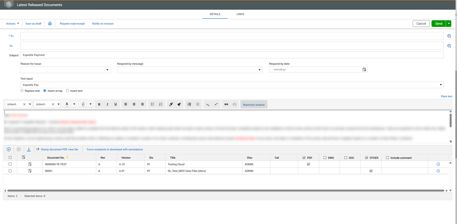 Create a transmittal from the Documents register to transmit document links to recipients.