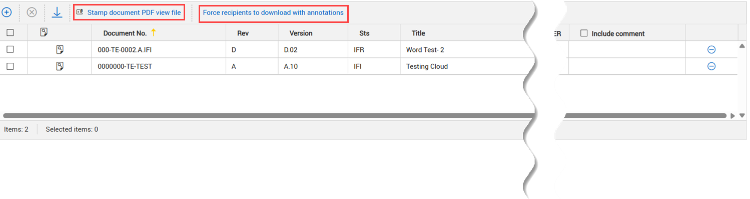 If you want the annotations to be automatically downloaded when the recipient downloads the transmittal, click Force recipients to download with annotations.