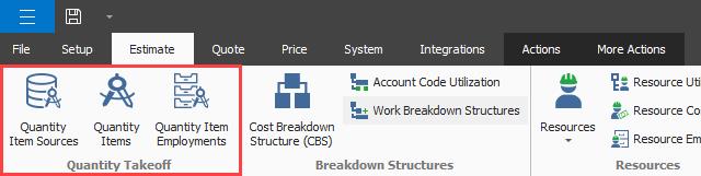 In the Quantity Takeoff section, you can choose from the following: