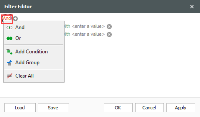 With each additional Condition statement, you need to select an operator and a value in order for your customized filter to take effect on your chosen column. Many new comparison operators have been added to this version as shown below: