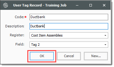 Additionally, selection registers often permit new objects to be added on the fly, so if a resource or tag value is missing from the job, it can easily be added while employing the Cost Item Assembly.