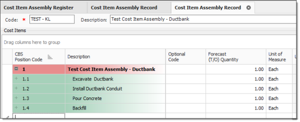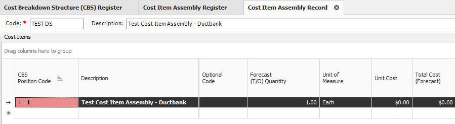 Cost Items for a Cost Item Assembly are created within the Cost Item Assembly Record, not in the CBS Register.