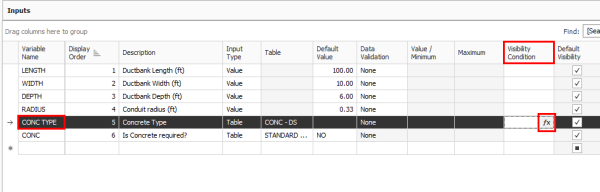 In the Visibility Condition field for the CONC TYPE variable, click the fx button.