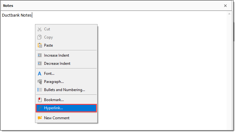 In the Notes text box, type Ductbank Notes.