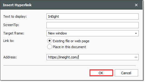 Type in a link to your SharePoint or document sharing site, then click OK.