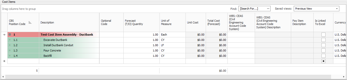 Expand your Cost Items window so that you can see all the cost items.