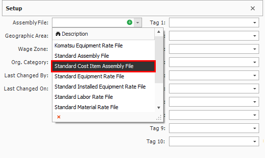 In the Assembly File drop-down, select Standard Cost Item Assembly File.
