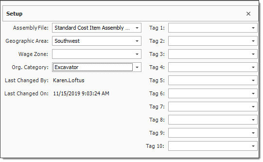 Once your Cost Item Assembly has been created, it is time to build the assembly. To begin, you first fill out the setup information, then you use the remaining data blocks to build the assembly record.