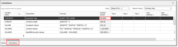 As in the preceding example, the [VOL_CY] calculation takes the result of the [VOL_CUFT] calculation and divides by 27 to convert the volume from cubic feet to cubic yards.