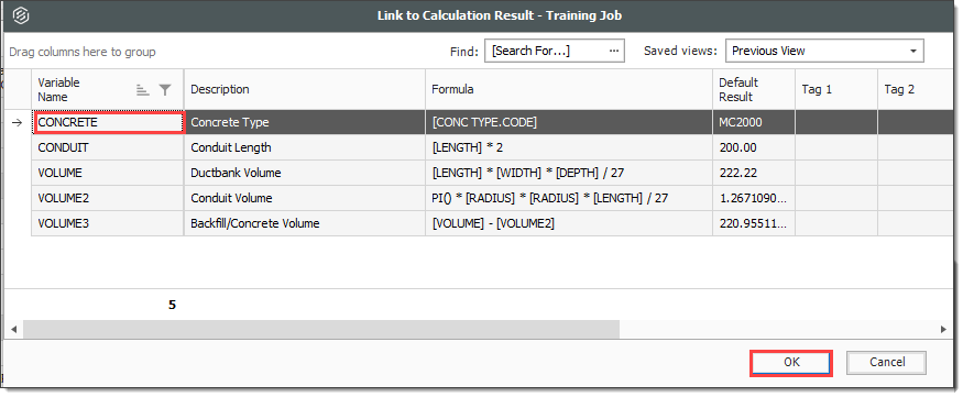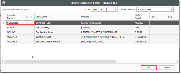 Right click on the Install Ductbank Conduit Forecast (T/O) Quantity field and select Link this field to Calculation Result.