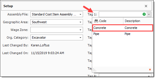 In the Tag 1 drop-down, select Concrete.