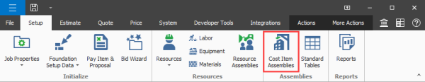 From the Setup tab, click on Cost Item Assemblies.