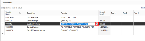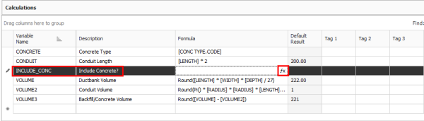 Create a new calculation. In the Variable Name field, type Include_Conc, enter Include Concrete? in the Description field, then click on the fx button to open the formula editor.
