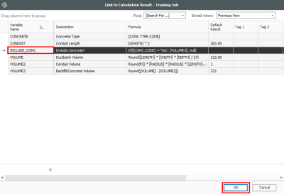 Select the INCLUDE_CONC calculation, then click OK.