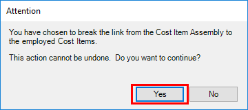 To ensure that the logic used in the calculation of a Cost Item Assembly is retained, employed Cost Item Assemblies are not directly editable in the CBS Register. To customize the results of an employed Cost Item Assembly, you can disassociate it from the originating Cost Item Assembly logic as per the following steps.