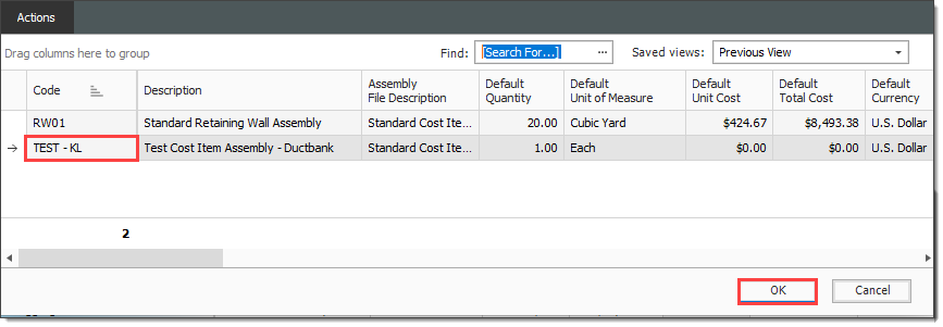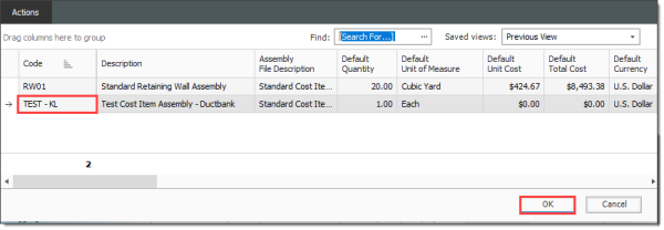 Navigate back to your Cost Item Assembly Record.