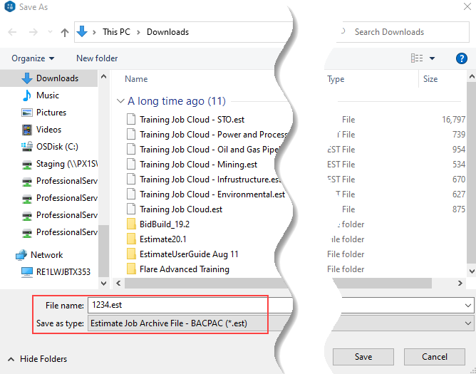 Save the .est job on your desktop. Click Save. Then click OK.
