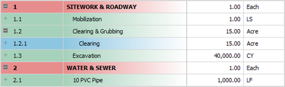 During estimate development, you will create new cost items to break down your work into specific activities. You can create superior and subordinate cost items as needed to organize your work.