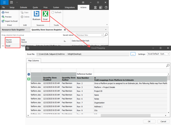 Microsoft Excel integration with quantity takeoff — You can now use Excel as a new source to import quantity item takeoff data into Estimate. Using Excel allows you to easily import data from other data sets or sources and gives you the opportunity to setup your data before importing it.