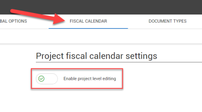 Note: Changes to the Fiscal Calendar will affect all projects in the organization. If you want to configure a unique fiscal calendar for your project, enable project-level editing under Project fiscal calendar settings.