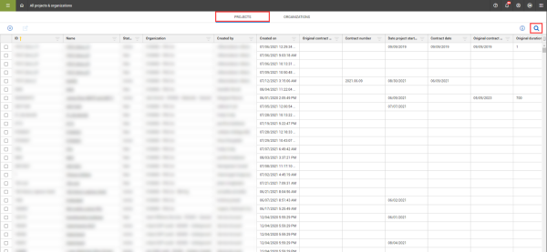 On the Projects tab you can select any project you are associated with. If your project is not shown on the initial screen, you can search by selecting the Search icon in the top right corner.