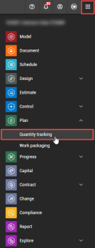 Selecting Plan > Quantity tracking from the app launcher icon in the upper-right corner of the page