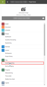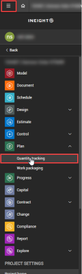 The following steps walk you through launching Quantity tracking using the second-level drop-down menu at the project level.