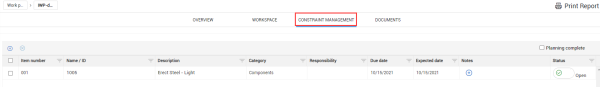 Some constraints, such as work packages, can have their status automatically updated. When a work package tagged as a constraint has a status of Construction complete, its related constraint's status changes to Closed.