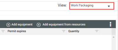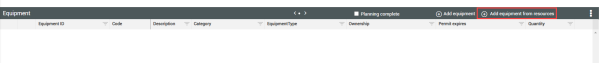 In the Equipment data block, add equipment by selecting Add equipment from resources and enter details for your project.