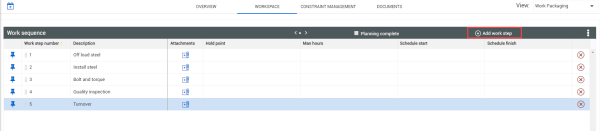 In the Work sequence data block, add work sequence steps by clicking on the Resource button and enter details for your project.