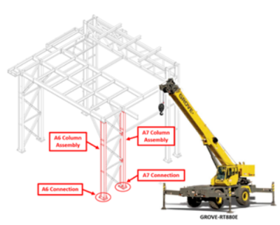 Tomorrow, your crew will be starting the steel erection work on your module. You are now ready to plan the work for your crew. During this first day, you want your crew to install the A7 connections to foundations. Your crew will consist of a Grove-RT880E crane, 3 Ironworkers and 1 Laborer. You want to make sure to communicate the work to your crew and identify safety concerns for the day.
