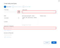 A free text field where you can enter the location where the work will be performed. |
