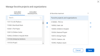 In the Favorites section of the Main menu, you can bookmark projects and organizations that you access most frequently. After saving favorites, the Main menu shows a combination of the first five organizations or projects that you selected. If you have more than five favorites saved, click Show more + to expand the list and show the additional organizations or projects.
