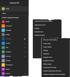 Provides menu type navigation to projects and organizations, and access to all InEight applications in a single location. |