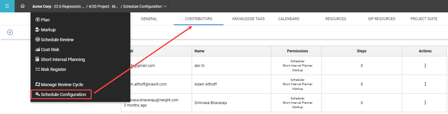 Schedule contributors are users assigned to the schedule. The contributors and their roles on a schedule are managed from the Schedule Configuration register.