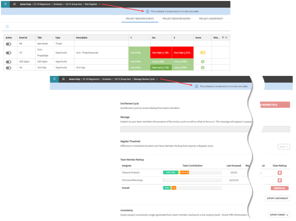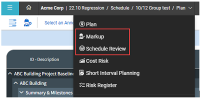 The Markup and Schedule Review views are disabled when the project is in a read-only state.