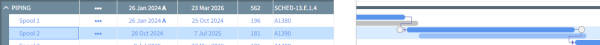 You can then compare the activities of each schedule next to each other in the Gantt chart.