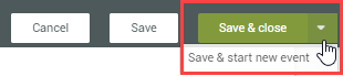 If you are filling out a form and want to start a new event immediately after saving the current event, click the Save & close drop-down button, and then select Save & start new event.