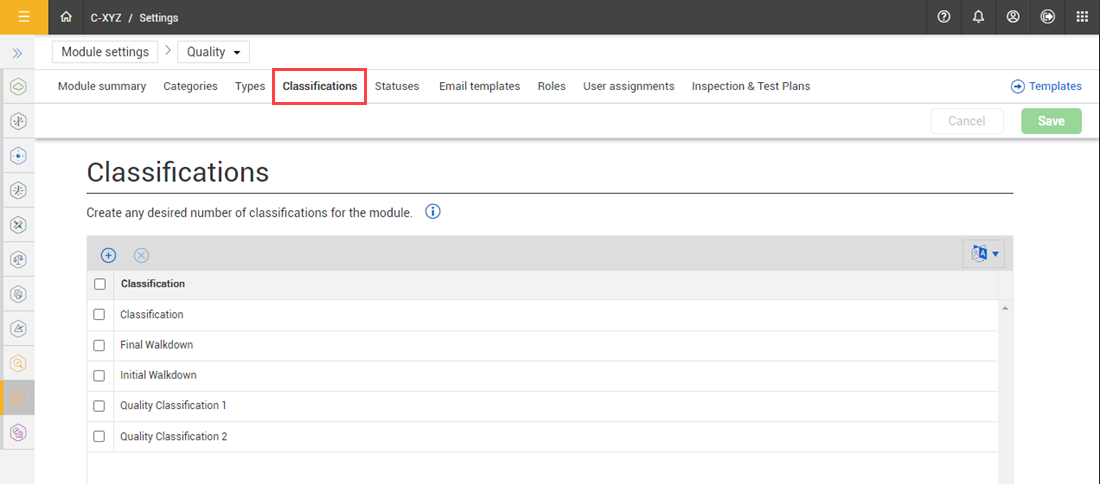 To navigate to Classifications, see steps to access organization level settings in Settings overview.