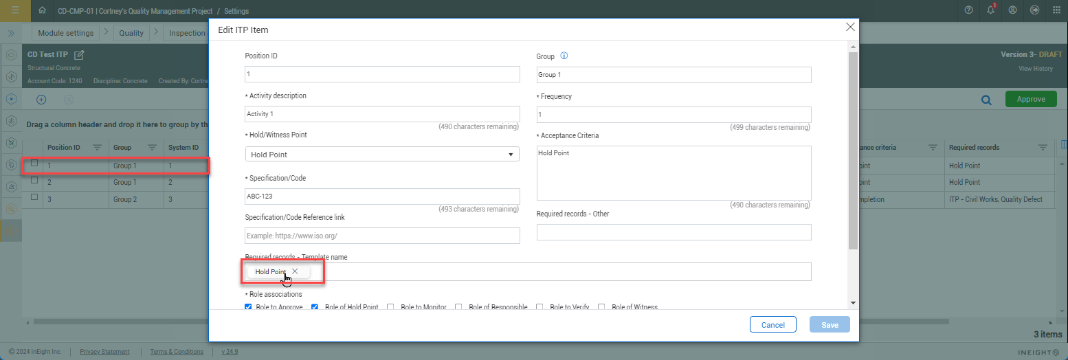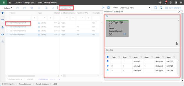 Third, within InEight Plan, select Manage ITPs to make sure the component is mapped to an ITP: