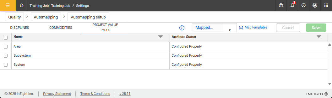 • Automapping enhancement – You now get a smoother, more consistent automapping experience across InEight Platform, InEight Plan, and Completions . You can manage your mapped project structure and component values directly from the source using a new multi-select validated list, perform bulk updates through export and import, and keep everything aligned since Completions and Compliance now pull the mapped values from Platform and Plan setups. Closed Read more